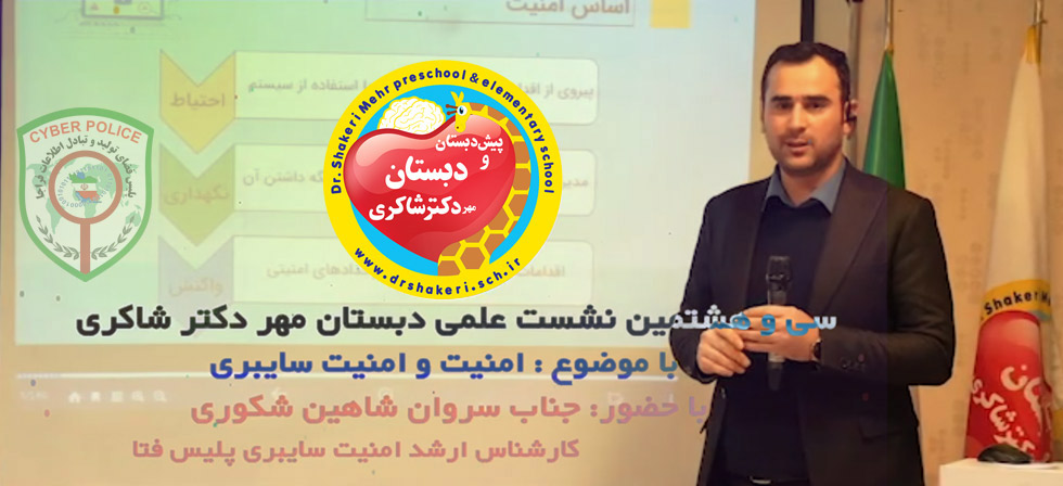 باحضور مهمان ویژه این جلسه ، جناب سروان شاهین شکوری کارشناس ارشد امنیت سایبری پلیس فتا (پلیس فضای تولید و تبادل اطلاعات فراجا) در محل دبستان پسرانه مهر دکتر شاکری برگزار شد